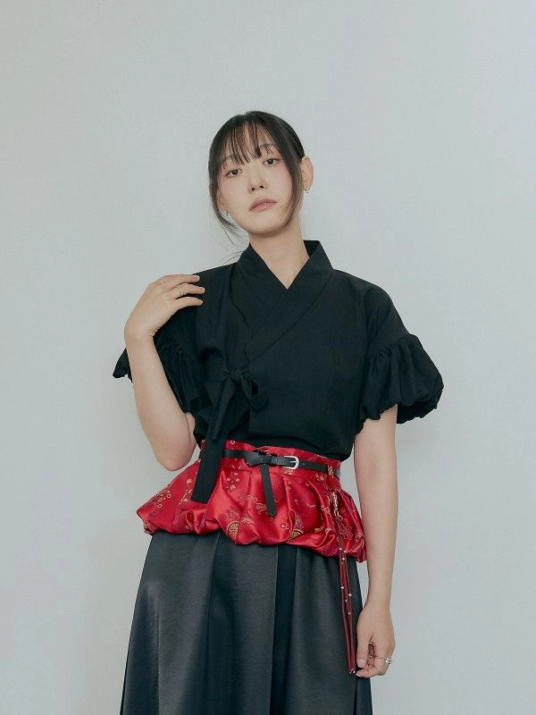 Model is wearing a Jeongjeon (Meoksaek) in size M / Yeongru (Meoksaek) in size M