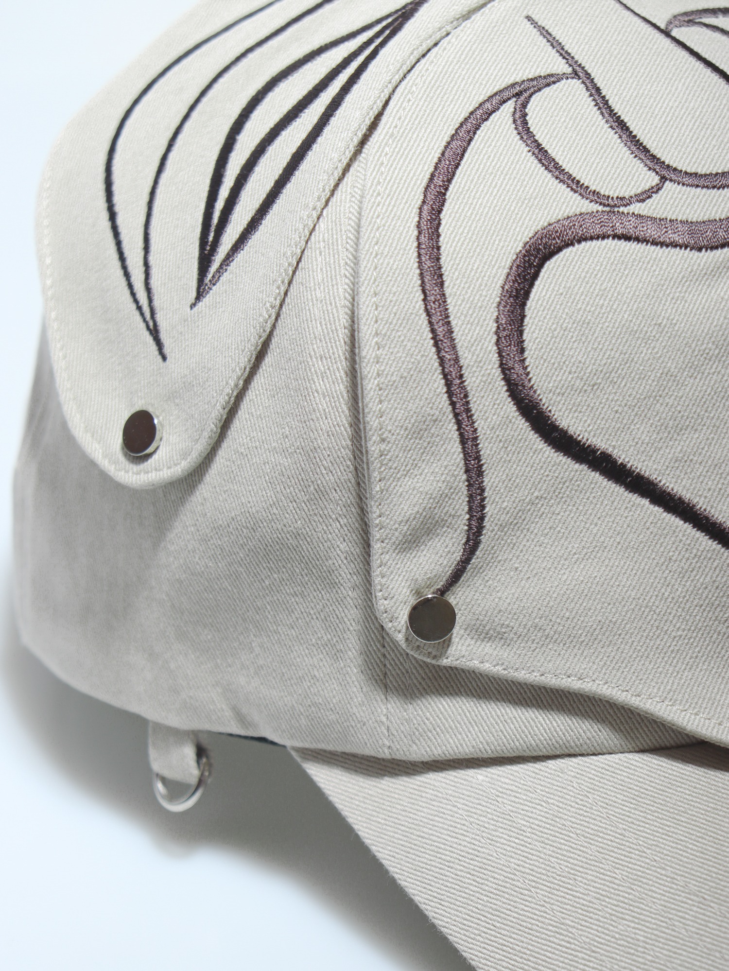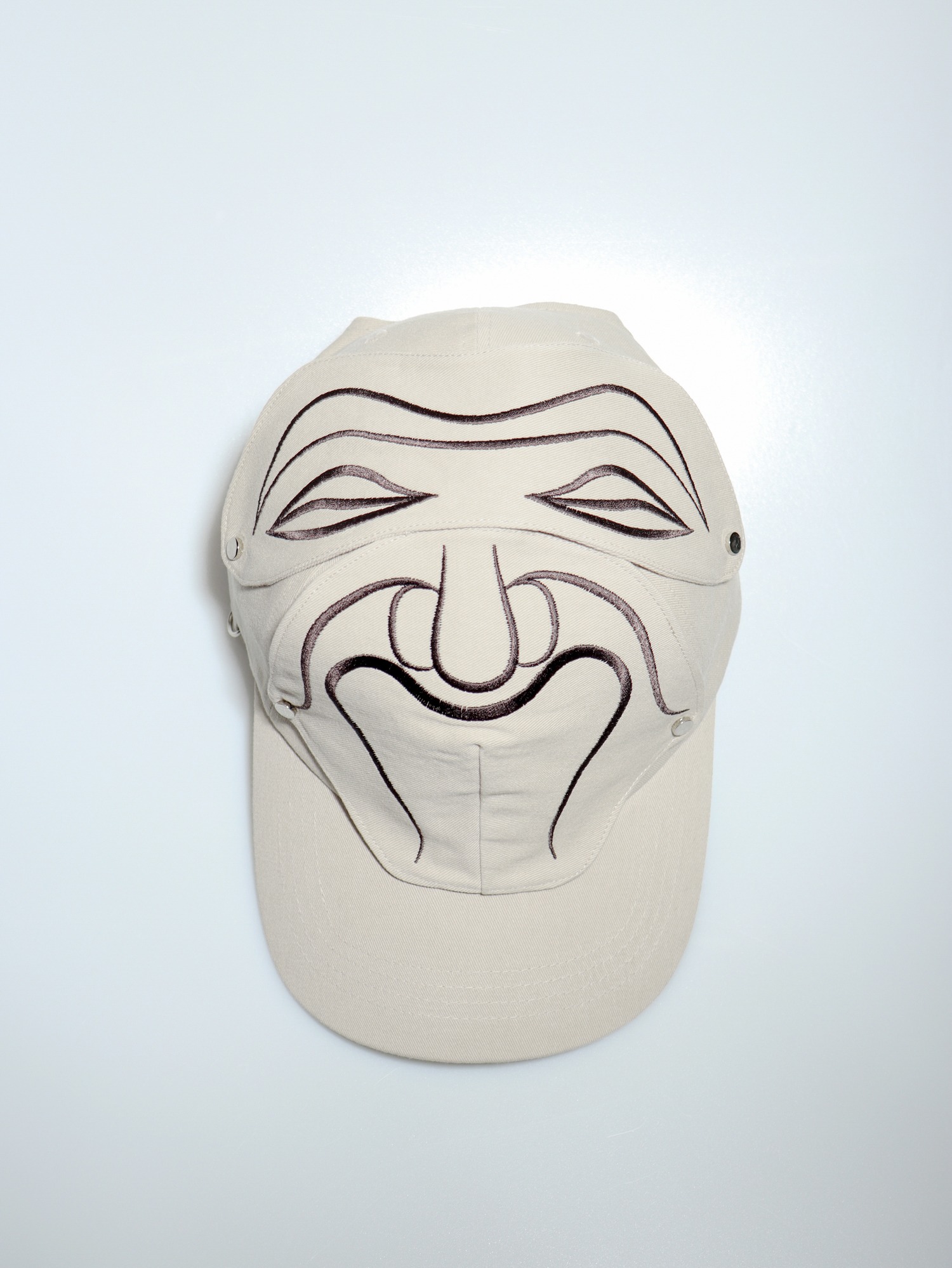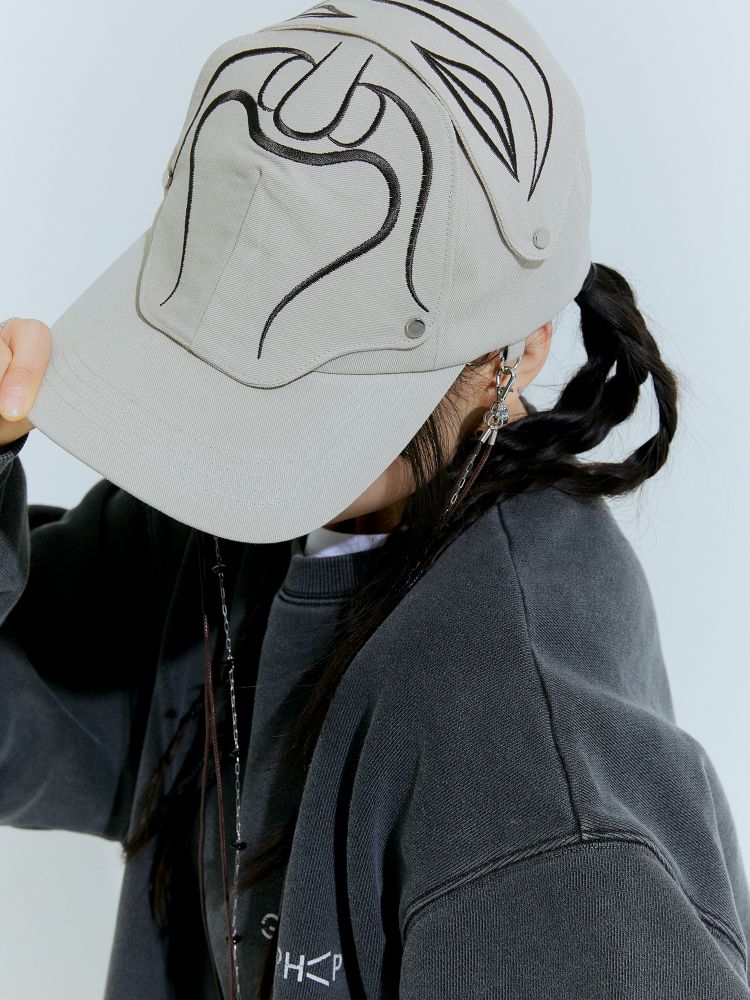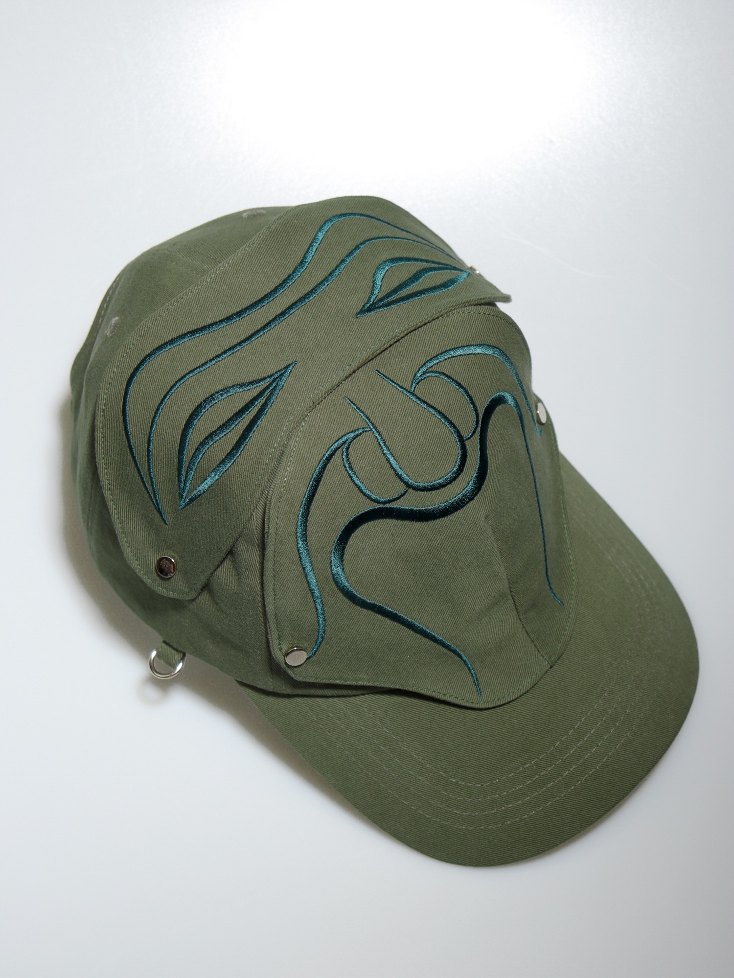 The embroidered patch section of the cap is designed to be removable with snap buttons.