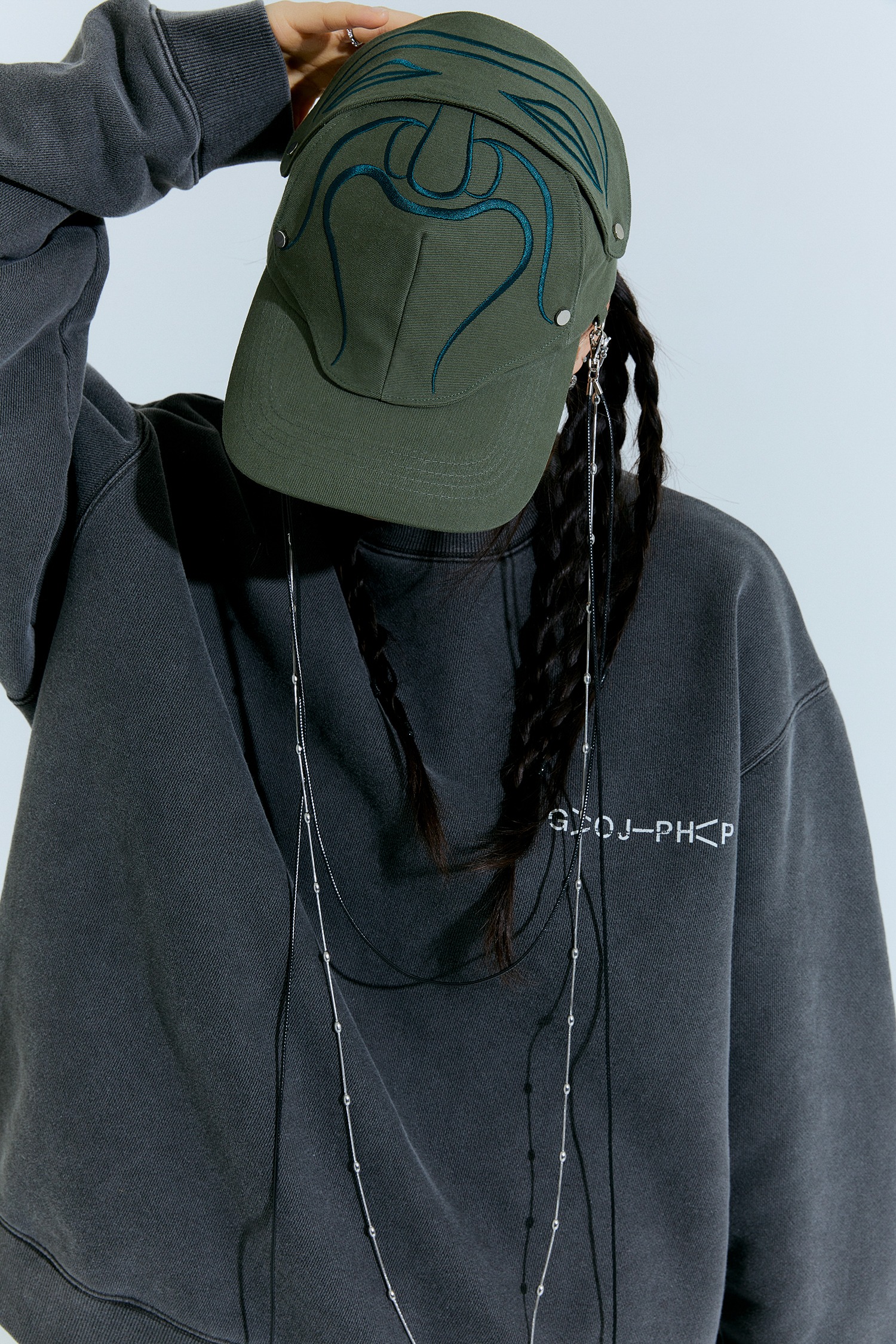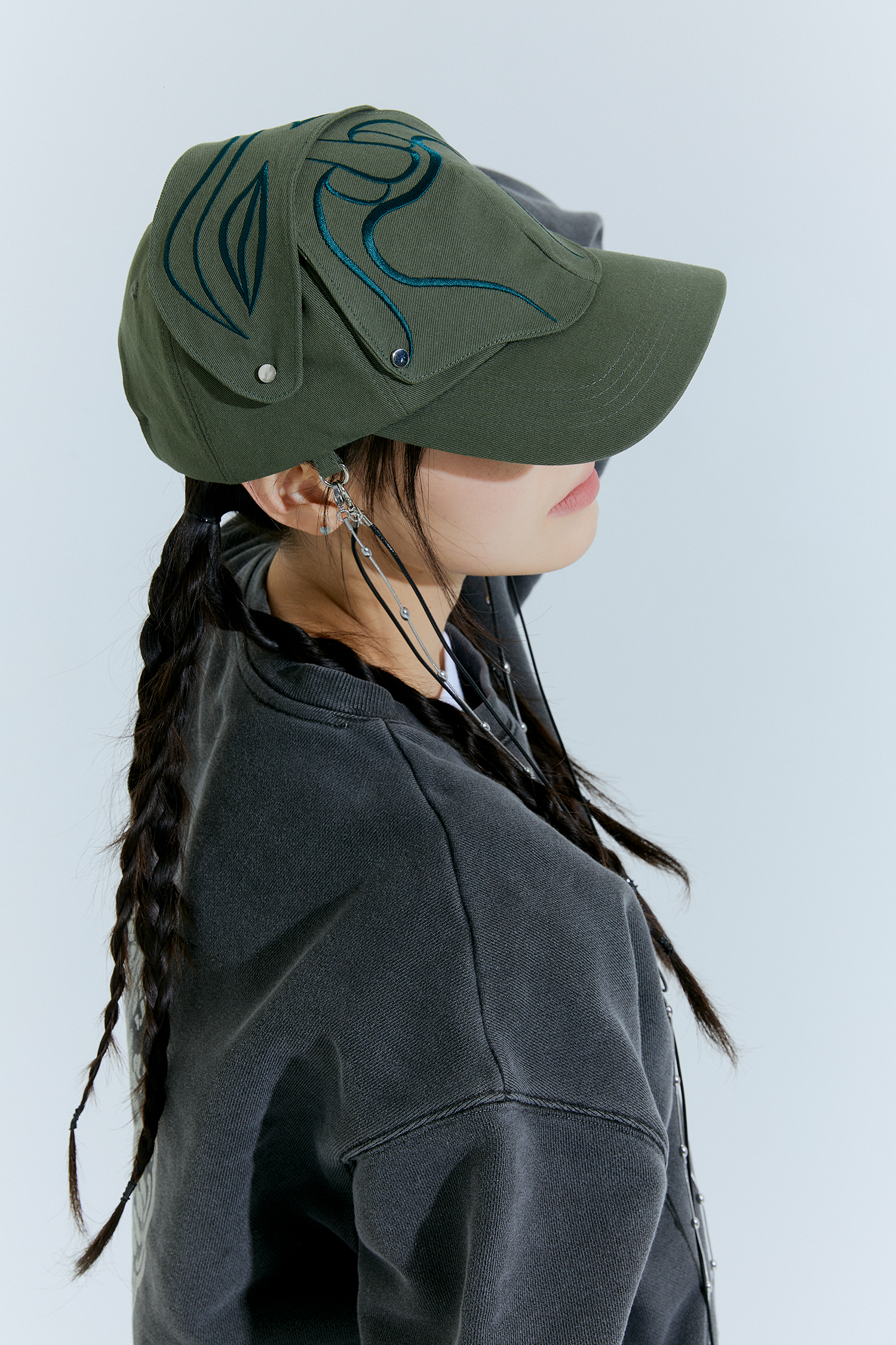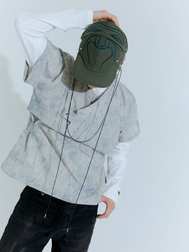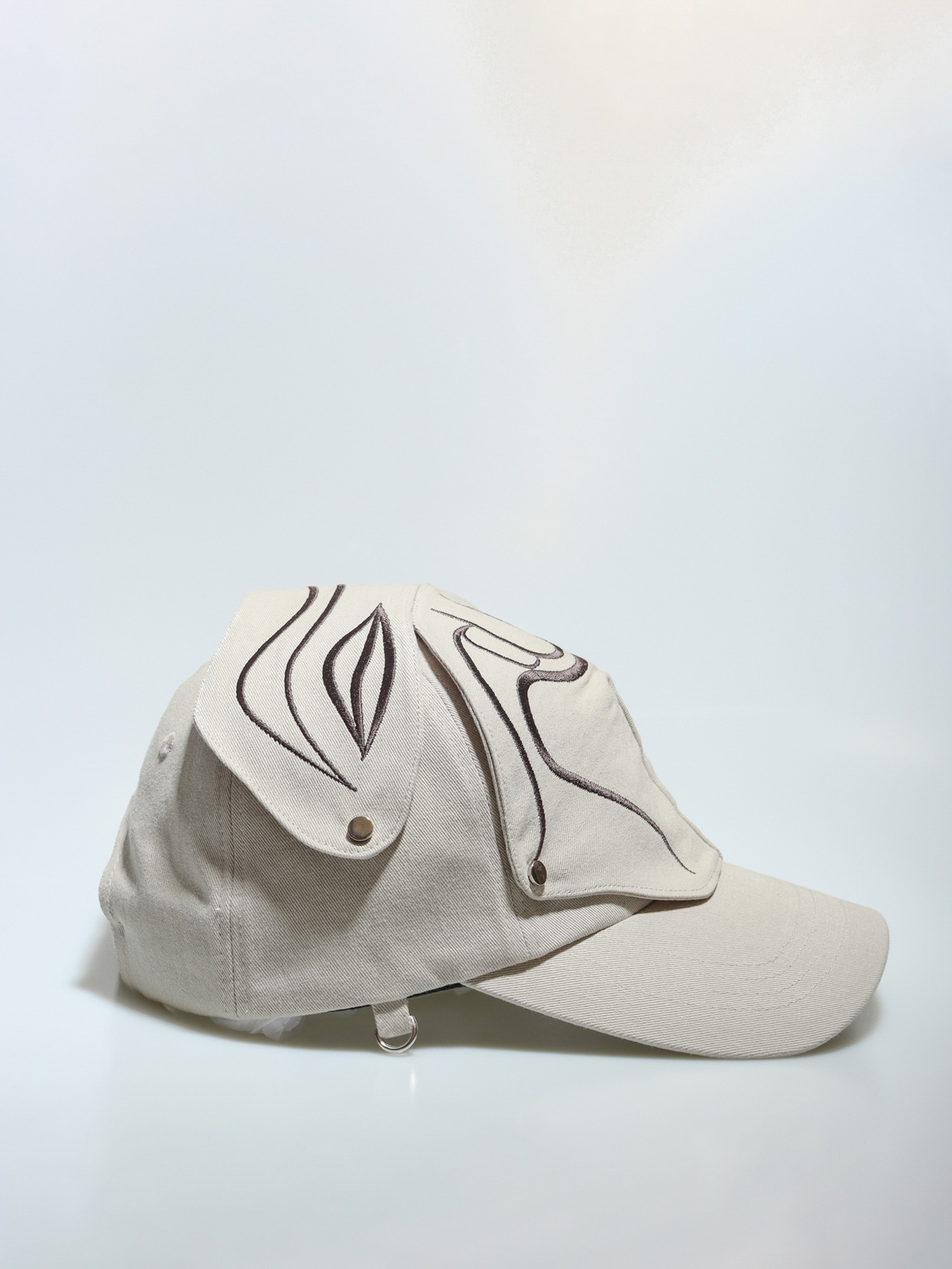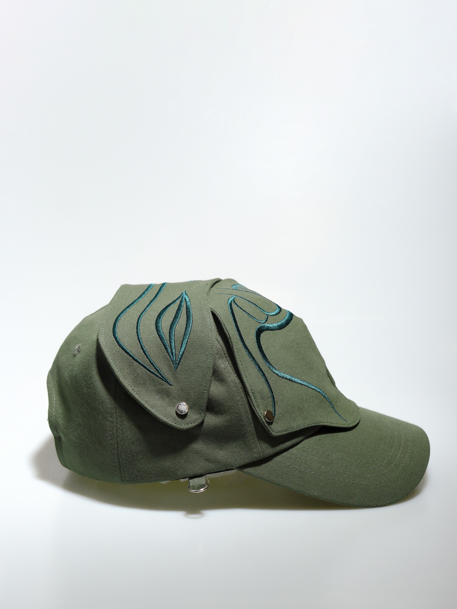 The embroidered patch section of the cap is designed to be removable with snap buttons.