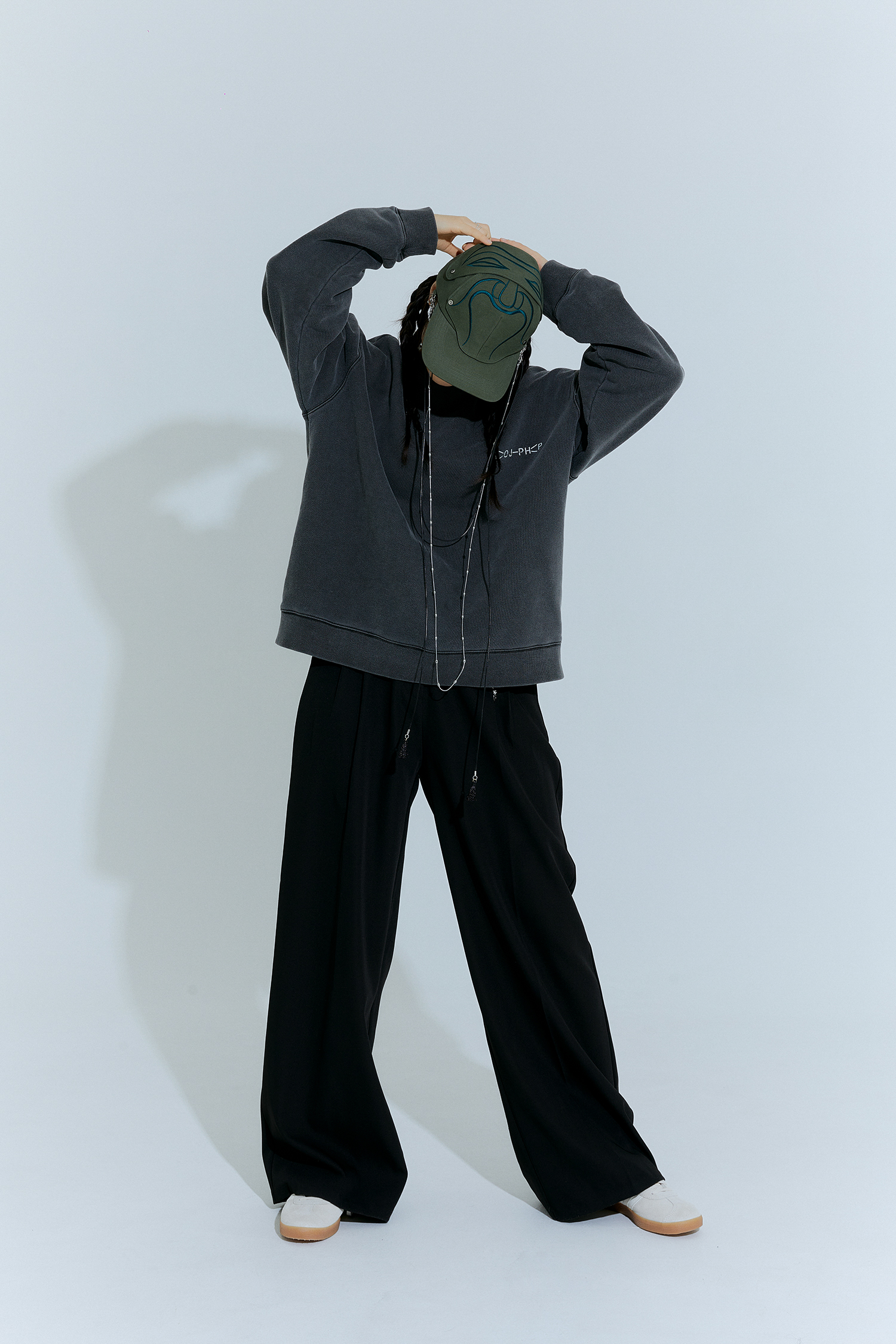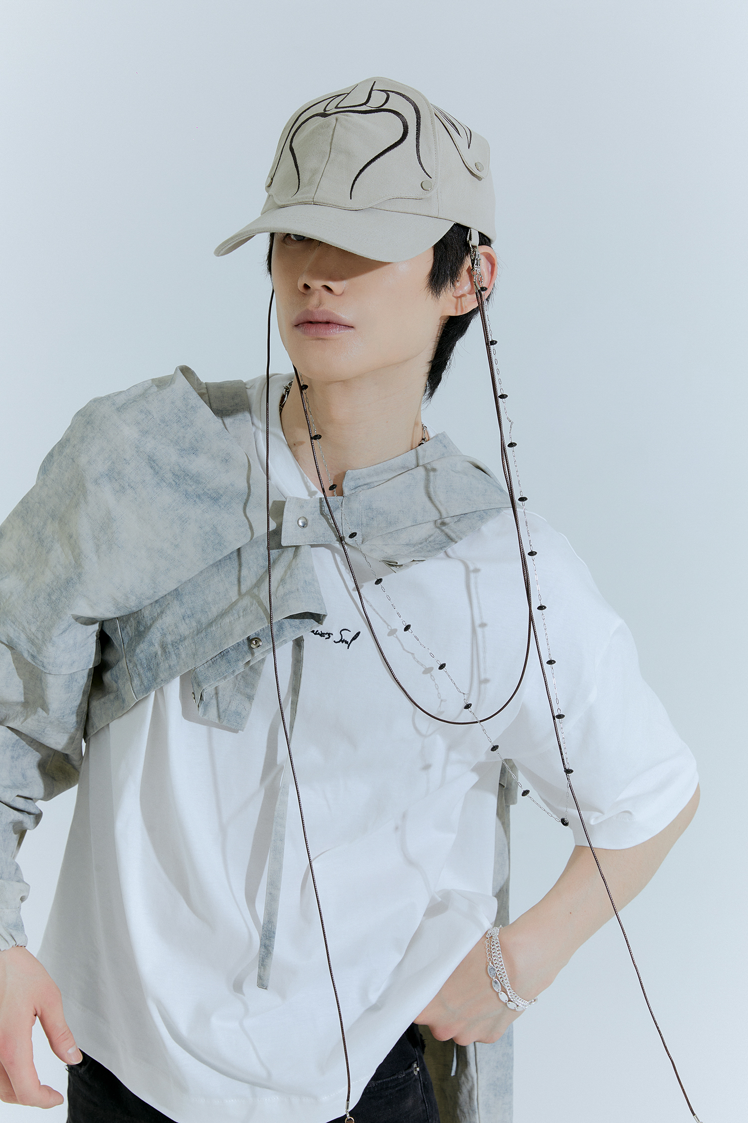 Straps and chains shown in the images are for styling purposes