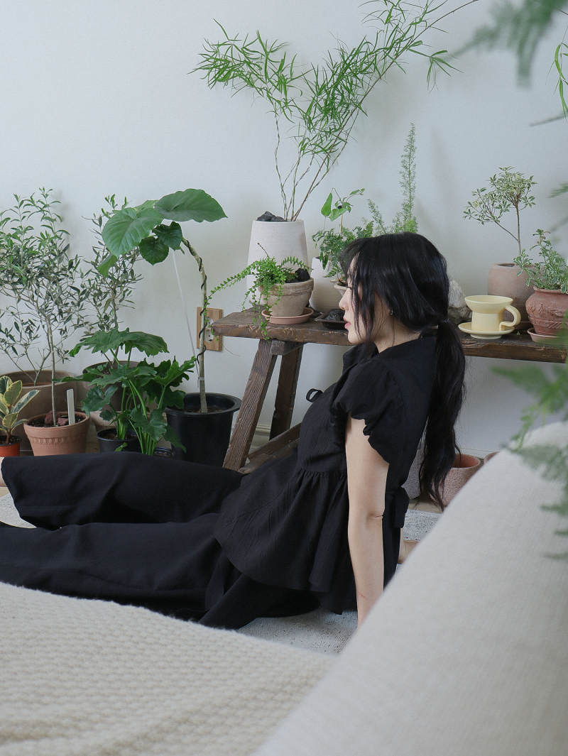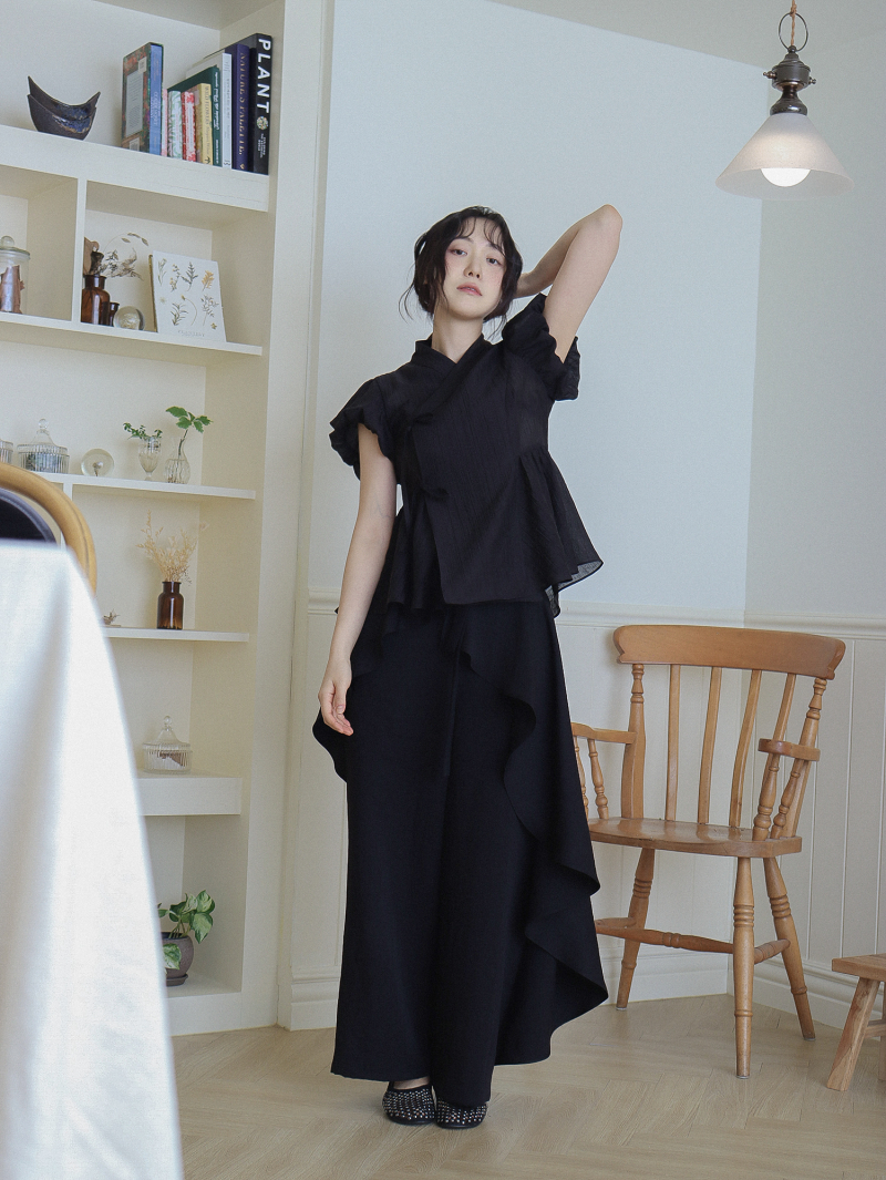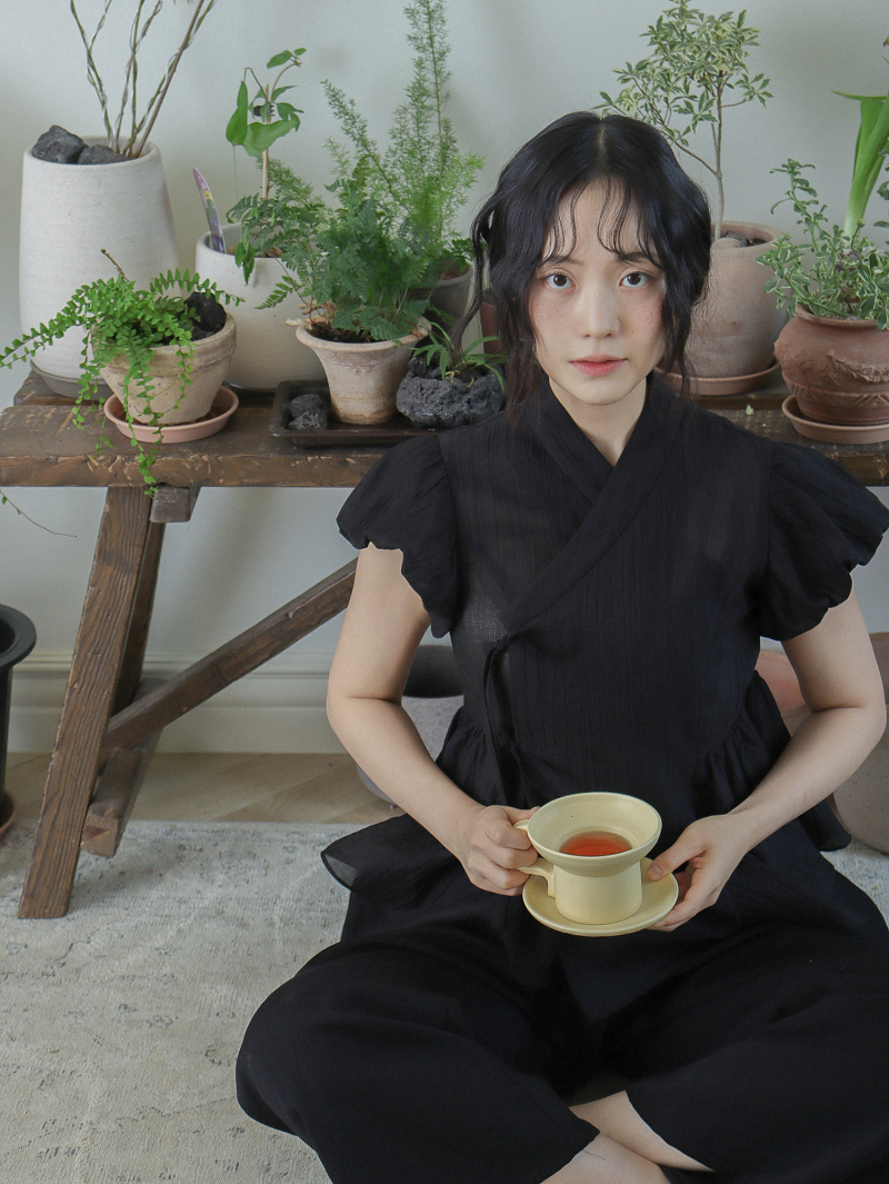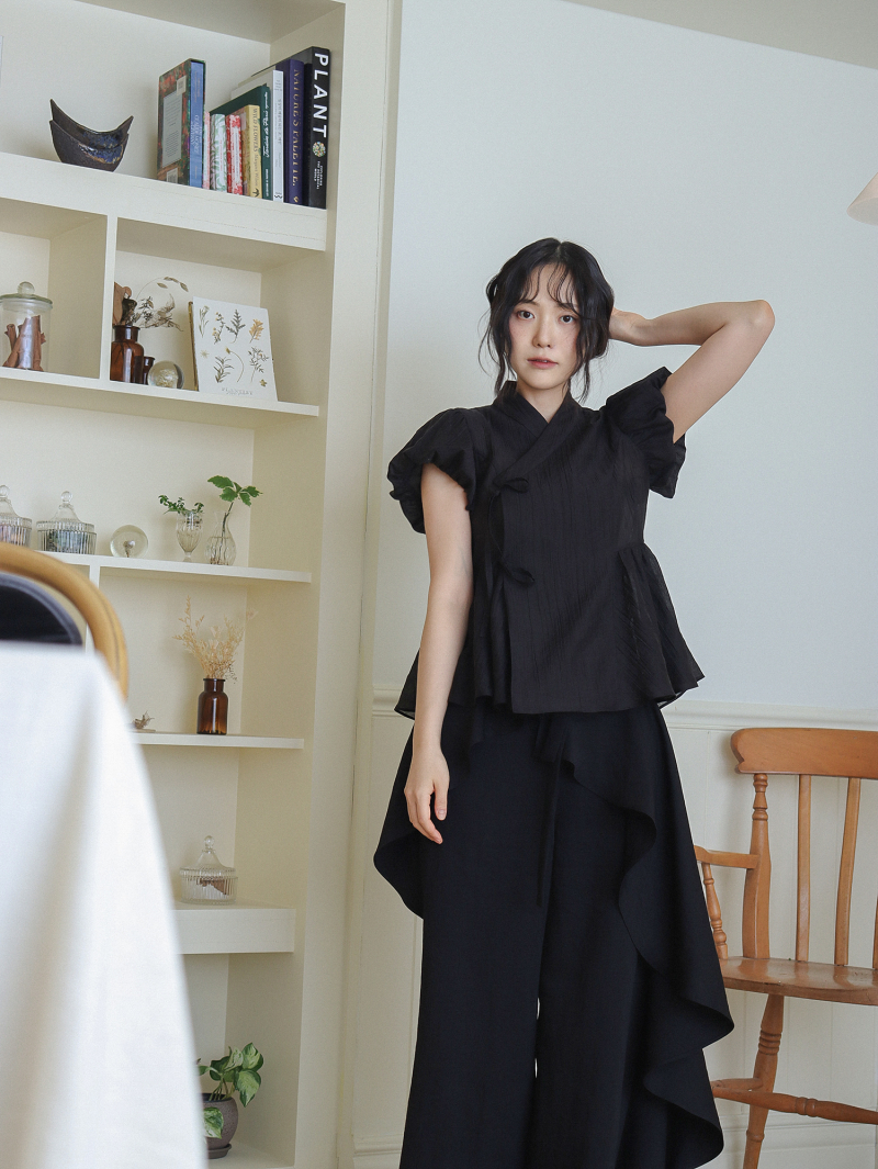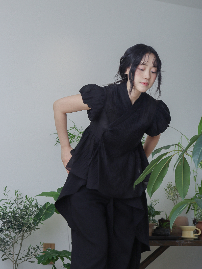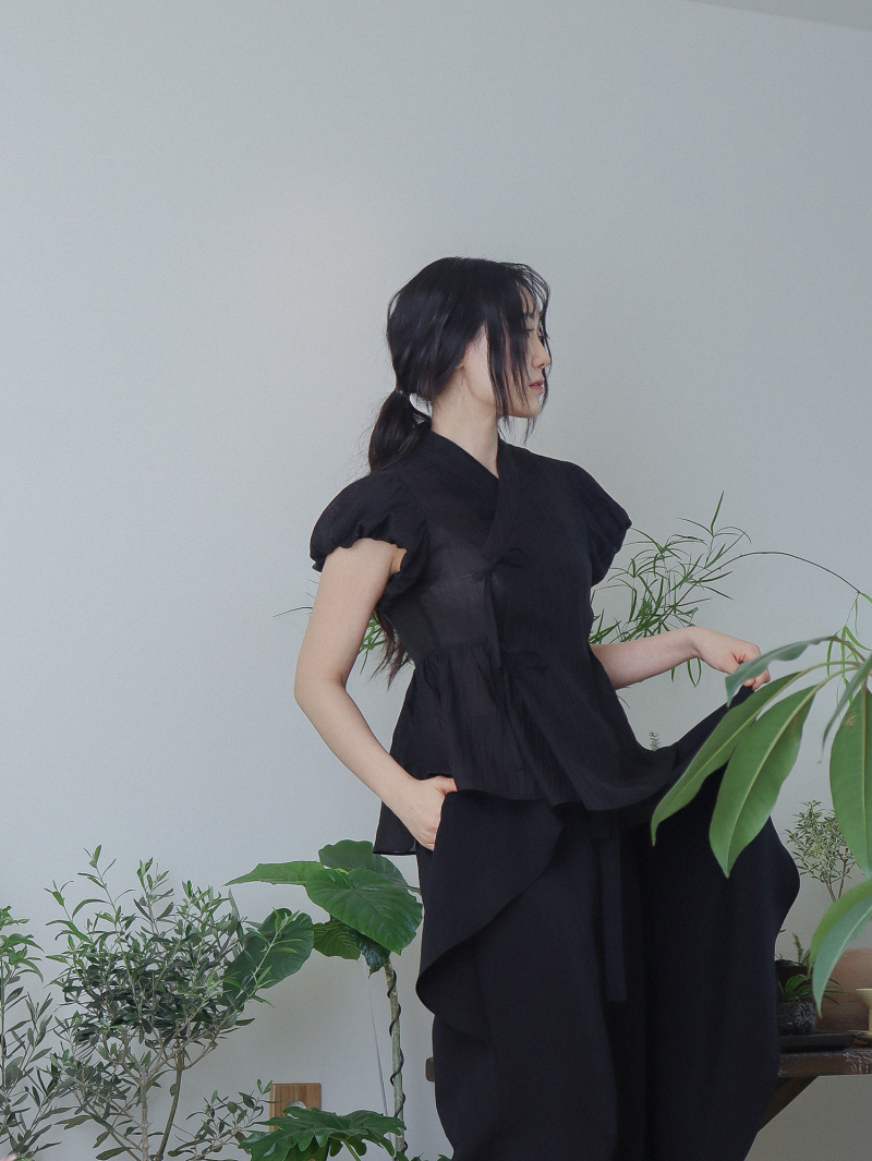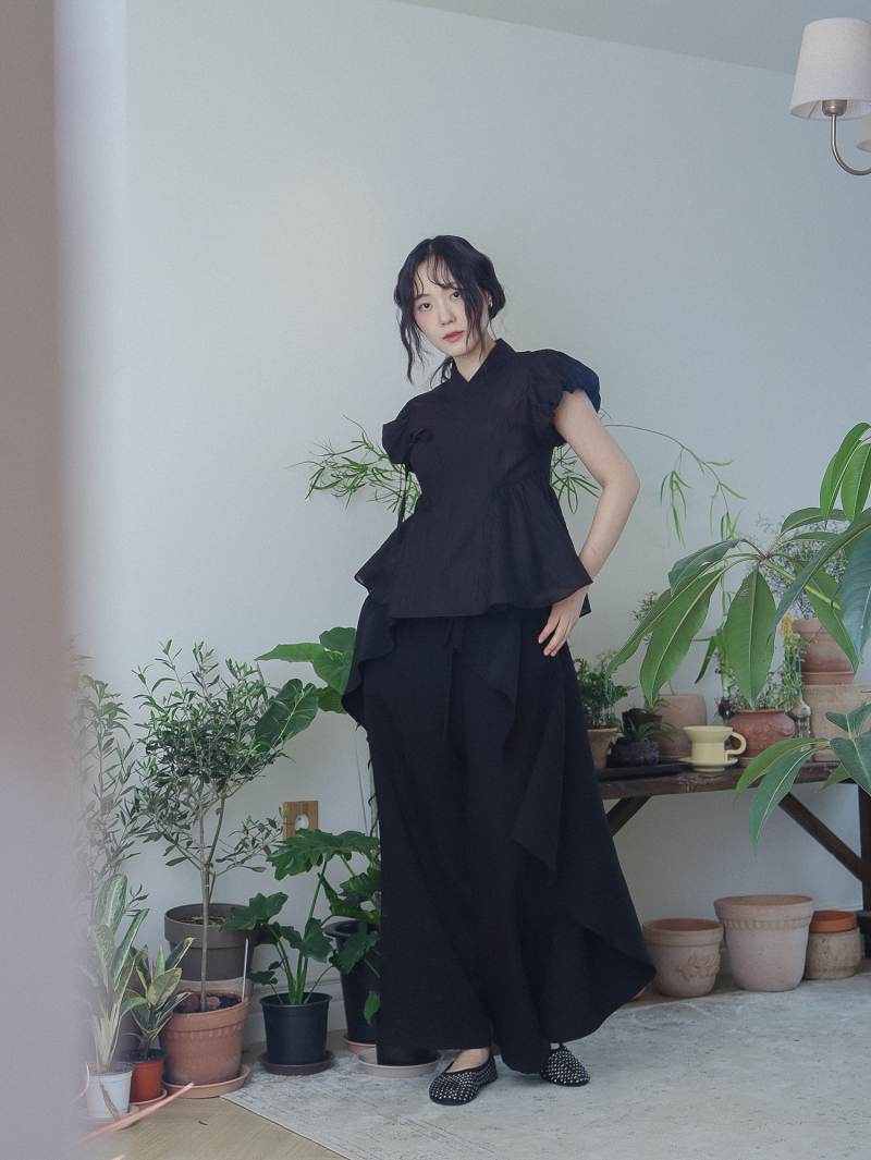 Model is wearing a Soso Jeogori Mukheuk (Black) in size M