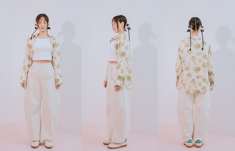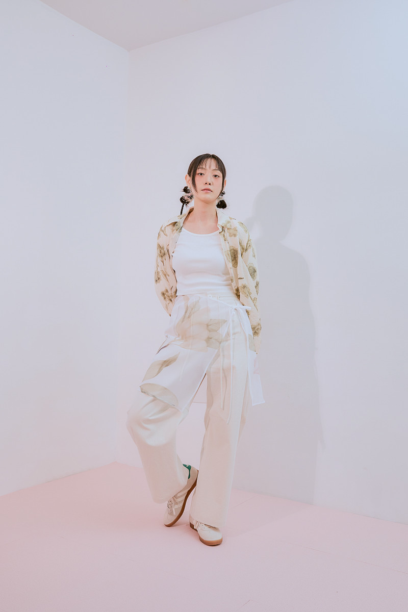 Model is wearing a Salchang Neoreun Pants Sosaek (Ivory) in size S / Magnolia Wrap Skirt
